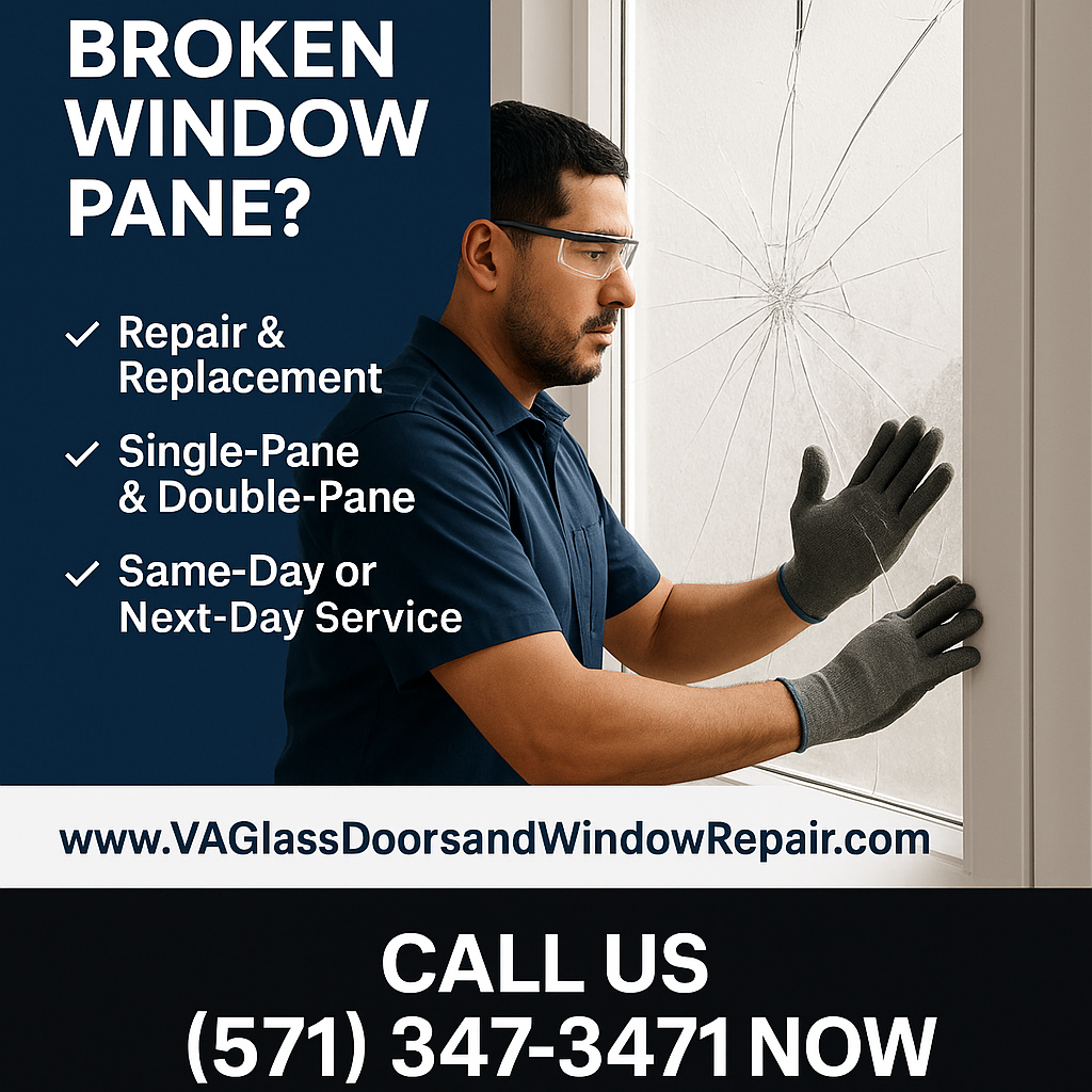 Broken window panes can disrupt your comfort, security, and energy efficiency, especially in Northern Virginia, where seasonal extremes make intact, well-sealed windows essential. Whether you’re dealing with a hairline crack, a shattered pane, or fogging between the glass layers, Virginia Glass Doors and Window Repair is your trusted partner for fast, precise glass replacement and repair. We specialize in fixing and replacing both single-pane and double-pane window glass for residential and commercial properties across Falls Church, Fairfax, Woodbridge, Arlington, Alexandria, McLean, Great Falls, Reston, Vienna, Tysons, Manassas, Chantilly, Ashburn, Centreville, Burke, Lorton, Gainesville, Dulles, Dale City, Oakton, Brambleton, Springfield, Idylwood, Lincolnia, Franconia, Fort Hunt, Annandale, and Woodlawn, VA.